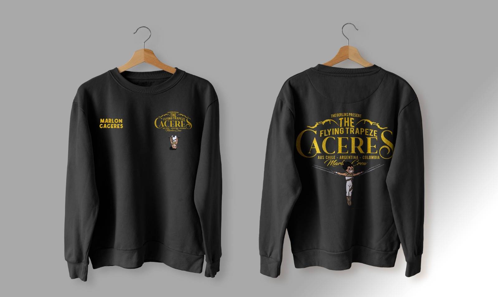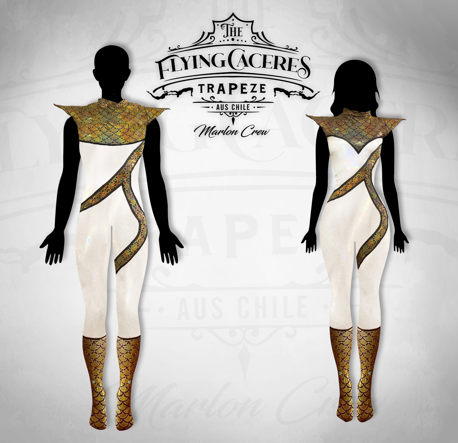 Cada traje de Flying Cáceres es diseñado por nuestra creadora residente, pensado para realzar el movimiento, la identidad y el brillo único de cada número. También confeccionamos a pedido, adaptándonos a la visión de espectáculos de todo el mundo.